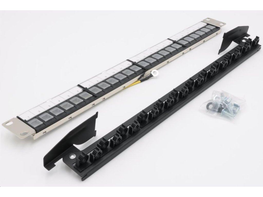 Vrátane montážnej sady M6 pre stojany (4x skrutka + 4x matica + 4x podložka)Kovový patch panel s jedinečným spôsobom inštalácie kľúčových kameňov s uzdou. Predný panel je pokrytý štyrmi plastmi so 4 otvormi, je možné osadiť 4 moduly so 6 pozíciami lichobežníkového skreslenia. Poloha uzemňovacieho kábla a značky