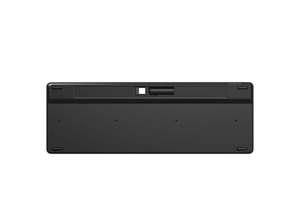 - Klávesnica podporuje viacnásobné pripojenia - medzi zariadeniami sa dá prepínať pomocou tlačidiel na hornej strane klávesnice (až 3 zariadenia)