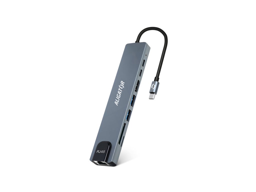 Aligator Dokovacia stanica USB-C/Hub 8v1 (USB-C/2xUSB/SD/MicroSD/HDTV/RJ45)