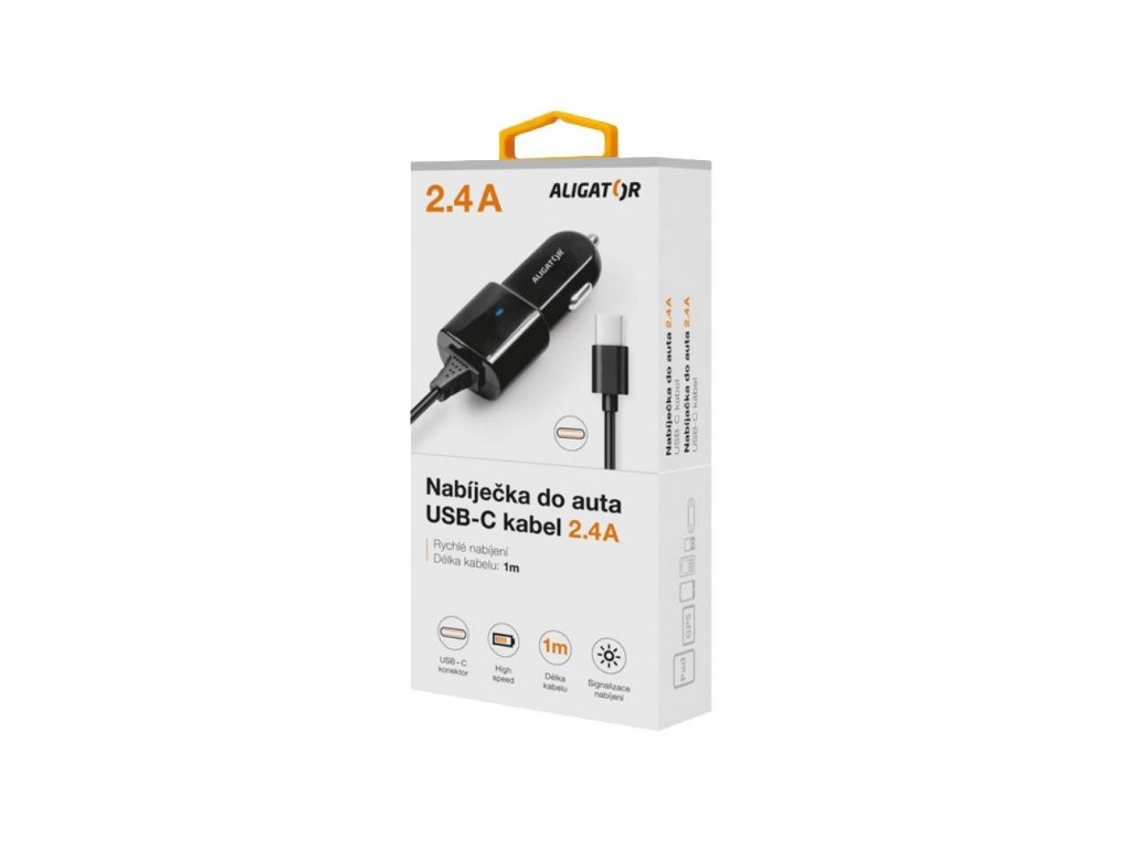 Aligátor nab. do auta USB-C s USB TCH 2,4A čierna