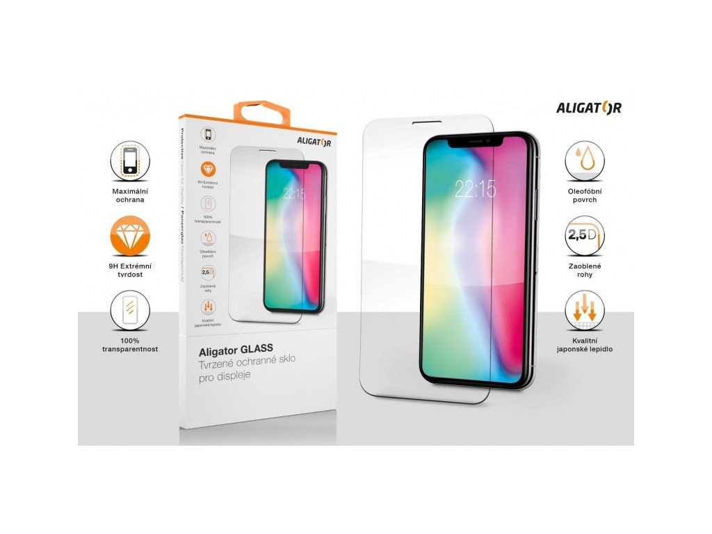 Ochranné tvrzené sklo ALIGATOR Glass Transparentní vysoce odolné temperované sklo ALIGATOR GLASS.