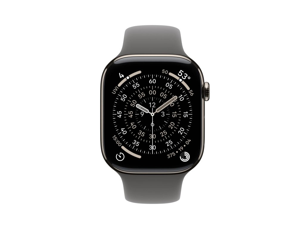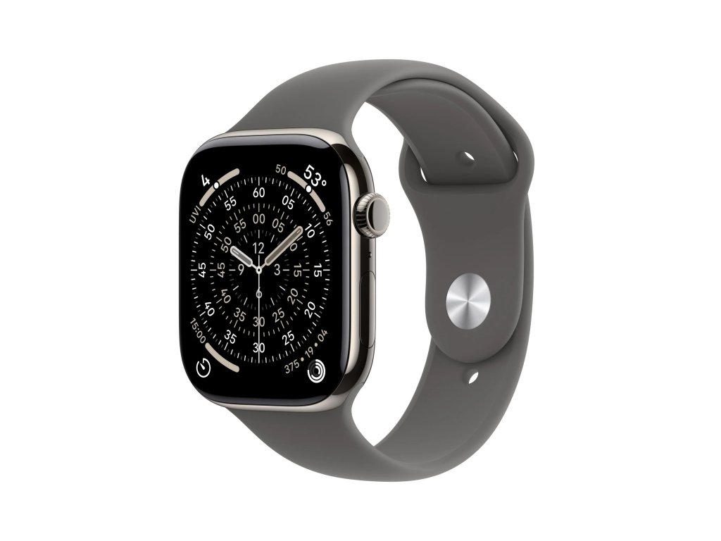 Apple Watch Series 11 Cellular Sport Band přírodní/kamenně šedé S/M * pro zápěstí s obvodem 140–245 mm * korunka Digital Crown s haptickou odezvou * reproduktor/mikrofon Operační systém: watchOS Displej: stále zapnutý LTPO3 OLED Retina, 416×496 pixelů, 1220 mm2, 326 ppi, 1/2000 nitů Čip: * S10 s 64bitovým dvoujádrovým procesorem * 4jádrový Neural Engine * 64 GB Připojení: * GPS L1, GLONASS, Galileo, QZSS a BeiDou * LTE a UMTS * Wi-Fi 4 (802.11n) * podpora 2,4GHz a 5GHz Wi-Fi sítí * Bluetooth 5.3 * NFC: Apple Pay, GymKit Snímače: * elektrický snímač srdeční činnosti * třetí generace optického snímače srdeční činnosti * saturace kyslíkem * teploty * hloubkoměr do 6 m * teploty vody * kompas * stále aktivní výškoměr * akcelerometr snímající vysoké přetížení * gyroskop s vysokým dynamickým rozsahem * okolního osvětlení Voděodolnost: do 50 m (pro plavání) Odolnost proti prachu: IP6X Funkce: * aplikace Saturace kyslíkem * aplikace EKG * aplikace Sledování cyklu se zpětným odhadem doby ovulace * aplikace Srdeční tep * oznámení o vysoké a nízké tepové frekvenci * oznámení o nepravidelném srdečním rytmu * aplikace Léky * aplikace Všímavost se zaznamenáváním stavu mysli * aplikace Hluk * aplikace Spánek se sledováním fází spánku * spánkové skóre * upozorňování na spánkovou apnoi * oznámení o hypertenzi * tíseň SOS * mezinárodní tísňové volání * detekce autonehody * detekce pádu * monitorování hluku Kompatibilita: iPhone 11 a novější, včetně iPhonu SE (2. generace a novější) s iOS 26 nebo novějším Napájení: vestavěná dobíjecí lithium-iontová, podpora rychlonabíjení, až 24 hodin běžného používání Materiál pouzdra: titan Rozměry: 46x39x9,7mm Hmotnost: 43,1g Obsah balení: * Apple Watch Series 11 * řemínek * magnetická rychlonabíječka Apple Watch s USB-C kabelem (1m)Dodatočné parametre