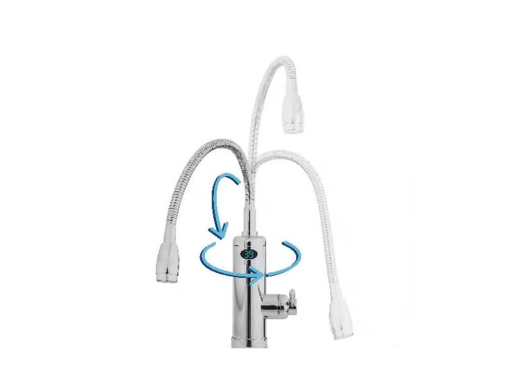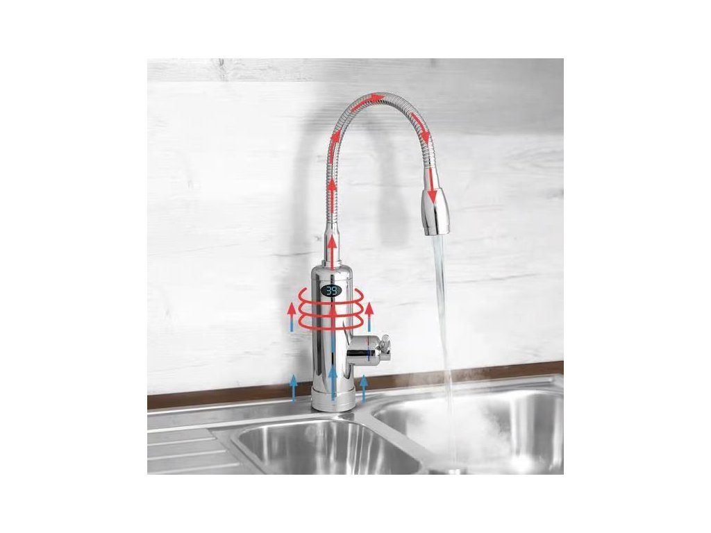 Protékajúca voda je okamžite ohrievaná vestavěnou vysoko výkonnou topnou špirálou, a preto vychádza z batérie Aquadon príjemne teplá počas niekoľkých sekúnd.