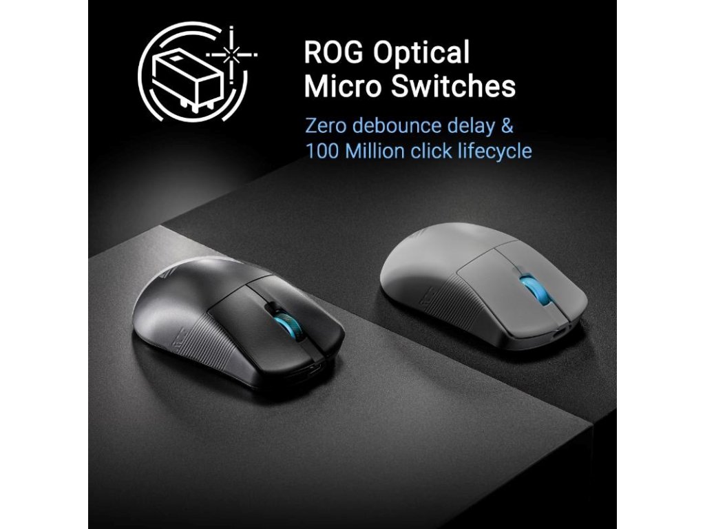 - Optické mikrospínače ROG: Okamžitá aktivácia s každým ostrým kliknutím a životnosť 100 miliónov kliknutí