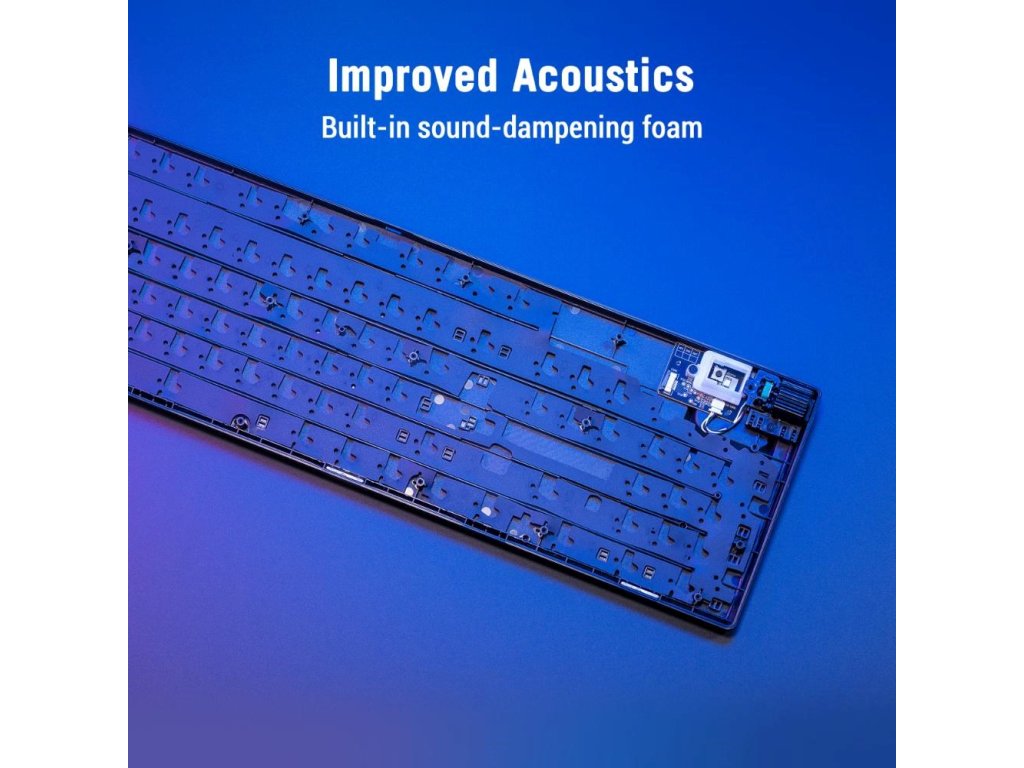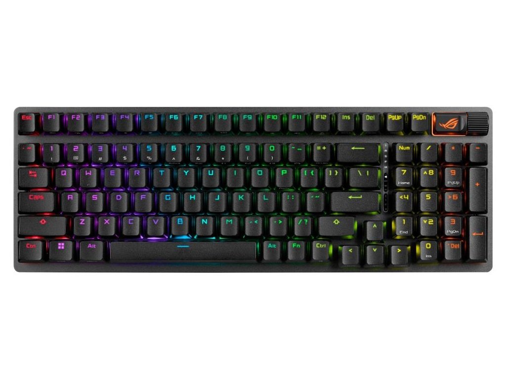 - Unikátny medzerník s motívom ROG: UV potiahnutý medzerník so špeciálnym označením ROG a tromi RGB LED diódami na spodnej strane