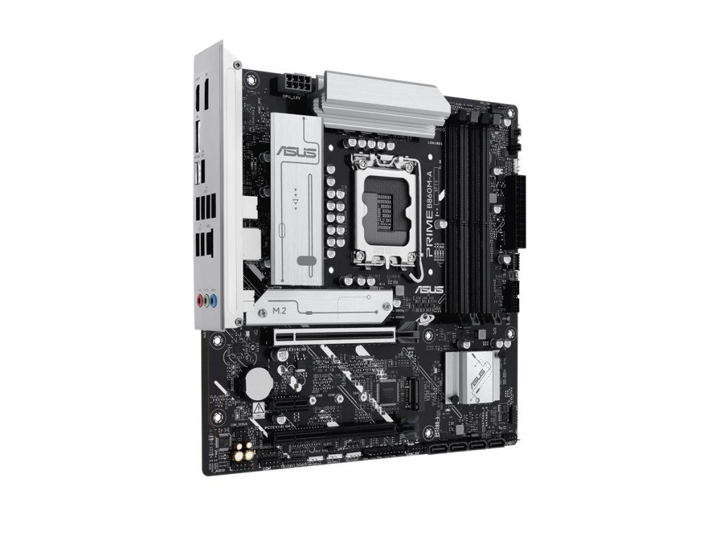 ASUS PRIME B860M-A * ATX Form Factor CPU: Support Intel® Core™ Ultra Processors (Series 2) , LGA1851 - Supports Intel® Turbo Boost Technology 2.0 and Intel® Turbo Boost Max Technology 3.0 Chipset: Intel® B860 Chipset Paměť: 4 x sloty DIMM, max. 192 GB, DDR5 - Podporuje až 8400+MT/s (OC), Non-ECC,Un-buffered ,Clocked Unbuffered DIMM (CUDIMM) *Dvoukanálová paměťová architektura *DIMM Fit *Podporuje paměťový modul Intel® Extreme Memory Profile (XMP) *ASUS Enhanced Memory Profile III(AEMPIII) Grafické porty: *2 x DisplayPort *1 x HDMI™ port Rozšiřující sloty: Intel® Core™ Ultra Processors(series 2) *1 x PCIe 5.0 x16 slot Intel® B860 Chipset *1 x PCIe 4.0 x16 slot (supports x4 mode) *1 x PCIe 4.0 x1 slot Úložný prostor: Total supports 2 x M.2 slots and 4 x SATA 6Gb/s ports Intel® Core™ Ultra Processors (Series 2) *M.2_1 slot (Key M), type 2242/2260/2280 (supports PCIe 5.0 x4 mode) Intel® B860 Chipset *M.2_2 slot (Key M), type 2242/2260/2280 (supports PCIe 4.0 x4 modes) *4 x SATA 6Gb/s ports Ethernet: *1 x Realtek 2.5Gb Ethernet *ASUS LANGuard Připojení a Bluetooth: USB: Zadní USB (Total 7 ports) *1 x USB 20Gbps port (1 x USB Type-C®) *1 x USB 10Gbps port (1 x Type-A ) *2 x USB 5Gbps ports (2 x Type-A) *4 x USB 2.0 ports (4 x Type-A) Přední USB (Total 7 ports) *1 x USB 10Gbps connector (supports USB Type-C® ) *1 x USB 5Gbps header supports 2 additional USB 5Gbps ports *1 x USB 2.0 header supports 2 additional USB 2.0 ports Audio: Realtek 7.1 Surround Sound High Definition Audio CODEC *Supports: Jack-detection, Multi-streaming, Front Panel Jack-retasking *Supports up to 24-Bit/192 kHz playback'' Audio Features *Audio Shielding *Premium audio capacitors *Dedicated audio PCB layers Vstupy/výstupy zadního panelu: *1 x USB 20Gbps port (1 x USB Type-C®) *1 x USB 10Gbps port (1 x Type-A) *2 x USB 5Gbps ports (2 x Type-A) *4 x USB 2.0 ports (4 x Type-A ) *2 x DisplayPort *1 x HDMI™ port *1 x Realtek 2.5Gb Ethernet port *3 x Audio jacks Interní vstupy/výstupy: Ventilátory a chlazení: *1 x 4-pin CPU Fan header *1 x 4-pin CPU OPT Fan header *1 x 4-pin AIO Pump header *3 x 4-pin Chassis Fan headers Napájení: *1 x 24-pin Main Power connector *1 x 8-pin +12V CPU Power connector Úložiště: *2 x M.2 slots (Key M) *4 x SATA 6Gb/s ports USB: *1 x USB 10Gbps connector (supports USB Type-C® ) *1 x USB 5Gbps header supports 2 additional USB 5Gbps ports *1 x USB 2.0 header supports 2 additional USB 2.0 ports Různé: *3 x Addressable Gen 2 headers *1 x Aura RGB header *1 x Clear CMOS header *1 x Chassis Intrusion header *1 x COM Port header *1 x Front Panel Audio header (F_AUDIO) *1 x S/PDIF Out header *1 x SPI TPM header (14-1 pin) *1 x 10-1 pin Front System Panel header *1 x Thunderbolt™ (USB4®) header Příslušenství: Kabely: *2 x SATA 6Gb/s cables Různé: *1 x M.2 rubber package *1 x Screw package for M.2 SSD Dokumenty: *1 x Quick start guideDodatočné parametre