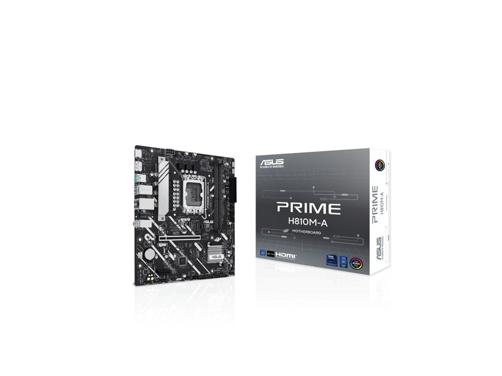 ASUS PRIME H810M-A * mATX Form Factor CPU: Support Intel® Core™ Ultra Processors (Series 2) , LGA1851 - Supports Intel® Turbo Boost Technology 2.0 and Intel® Turbo Boost Max Technology 3.0 Chipset: Intel® H810 Chipset Paměť: 2 x DIMM slots, max. 128GB, DDR5 *Supports up to 6400MT/s, Non-ECC, Un-buffered ,Clocked Unbuffered DIMM (CUDIMM) *Dual channel memory architecture *DIMM Fit *Supports Intel® Extreme Memory Profile (XMP) memory module *ASUS Enhanced Memory Profile II (AEMP II) Grafické porty: *1 x DisplayPort *1 x HDMI™ port Rozšiřující sloty: Intel® Core™ Ultra Processors (Series 2) *1 x PCIe 4.0 x16 slot Intel® H810 Chipset *1 x PCIe 4.0 x1 slot Úložný prostor: Total supports 2 x M.2 slots and 4 x SATA 6Gb/s ports Intel® H810 Chipset *M.2_1 slot (Key M), type 2280 (supports PCIe 4.0 x4 mode) *M.2_2 slot (Key M), type 2242/2260/2280 (supports PCIe 4.0 x2 mode) *4 x SATA 6Gb/s ports Ethernet: *1 x Intel® 1Gb Ethernet port *ASUS LANGuard Připojení a Bluetooth: V-M.2 slot only (Key E, CNVi & PCIe) - Wi-Fi module is sold separately. USB: Zadní USB (Total 7 ports) *2 x USB 10Gbps ports (2 x Type-A) *4 x USB 2.0 ports (4 x Type-A) Přední USB (Total 7 ports) *1 x USB 5Gbps connector (supports USB Type-C®) *1 x USB 5Gbps header supports 2 additional USB 5Gbps ports *1 x USB 2.0 header supports 2 additional USB 2.0 ports Audio: Realtek 7.1 Surround Sound High Definition Audio CODEC *Podporuje: Detekce konektorů, Multi-streaming, Přepínání konektorů na předním panelu *Podpora přehrávání až 24 bitů/192 kHz Zvukové funkce *Stínění zvuku *Prvotřídní zvukové kondenzátory *Vyhrazené zvukové vrstvy na desce plošných spojů Vstupy/výstupy zadního panelu: *2 x USB 10Gbps ports (2 x Type-A) *4 x USB 2.0 ports (4 x Type-A) *1 x DisplayPort *1 x HDMI™ port *1 x Vertical M.2 slot (Key E) *1 x Intel® 1Gb Ethernet port *3 x Audio jacks *1 x PS/2 keyboard/mouse combo port Interní vstupy/výstupy: Ventilátory a chlazení: *1 x 4-pin CPU Fan header *2 x 4-pin Chassis Fan headers Napájení: *1 x 24-pin Main Power connector *1 x 8-pin +12V CPU Power connector Úložiště: *2 x M.2 slots (Key M) *4 x SATA 6Gb/s ports USB: *1 x USB 5Gbps connector (supports USB Type-C® ) *1 x USB 5Gbps header supports 2 additional USB 5Gbps ports *1 x USB 2.0 header supports 2 additional USB 2.0 ports Různé: *3 x Addressable Gen2 headers *1 x Clear CMOS header *1 x COM Port header *1 x Front Panel Audio header (F_AUDIO) *1 x S/PDIF Out header *1 x SPI TPM header (14-1 pin) *1 x 10-1 pin Front Panel System header Příslušenství: Kabely: *2 x SATA 6Gb/s cables Různé: *1 x I/O shield *1 x Screw package for M.2 SSD Dokumenty: *1 x Quick start guideDodatočné parametre