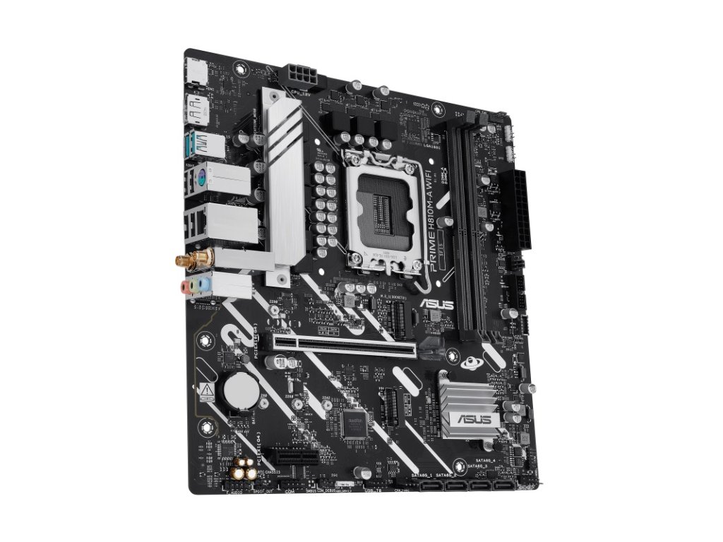 ASUS PRIME H810M-A WIFI * mATX Form Factor CPU: Support Intel® Core™ Ultra Processors (Series 2) , LGA1851 - Supports Intel® Turbo Boost Technology 2.0 and Intel® Turbo Boost Max Technology 3.0 Chipset: Intel H810 Chipset Paměť: 2 x DIMM slots, max. 128GB, DDR5 *Podporuje až 6400MT/s, bez vyrovnávací paměti, bez vyrovnávací paměti, s taktováním a bez vyrovnávací paměti *DIMM (CUDIMM) *Dvoukanálová architektura paměti *DIMM Fit *Podporuje paměťový modul Intel® Extreme Memory Profile (XMP) *ASUS Enhanced Memory Profile II (AEMP II) Grafické porty: 1 x DisplayPort 1 x HDMI™ port Rozšiřující sloty: Intel® Core™ Ultra Processors (Series 2) *1 x PCIe 4.0 x16 slot Intel® H810 Chipset *1 x PCIe 4.0 x1 slot Úložný prostor: Total supports 2 x M.2 slots and 4 x SATA 6Gb/s ports Intel® H810 Chipset *M.2_1 slot (Key M), type 2280 (supports PCIe 4.0 x4 mode) *M.2_2 slot (Key M), type 2242/2260/2280 (supports PCIe 4.0 x2 mode) *4 x SATA 6Gb/s ports Ethernet: *1 x Intel® 1Gb Ethernet port *ASUS LANGuard Připojení a Bluetooth: *Wi-Fi 6 *1x1 Wi-Fi 6 (802.11ax) *Supports 2.4/5GHz frequency band *Bluetooth® v5.3 USB: Zadní USB (Total 7 ports) *2 x USB 10Gbps ports (2 x Type-A) *4 x USB 2.0 ports (4 x Type-A) Přední USB (Total 7 ports) *1 x USB 5Gbps connector (supports USB Type-C®) *1 x USB 5Gbps header supports 2 additional USB 5Gbps ports *1 x USB 2.0 header supports 2 additional USB 2.0 ports Audio: Realtek 7.1 Surround Sound High Definition Audio CODEC *Supports: Jack-detection, Multi-streaming, Front Panel Jack-retasking *Supports up to 24-Bit/192 kHz playback Audio Features *Audio Shielding *Premium audio capacitors *Dedicated audio PCB layers Vstupy/výstupy zadního panelu: *2 x USB 10Gbps ports (2 x Type-A) *4 x USB 2.0 ports (4 x Type-A) *1 x DisplayPort *1 x HDMI™ port *1 x Wi-Fi module *1 x Intel® 1Gb Ethernet port *3 x Audio jacks *1 x PS/2 keyboard/mouse combo port Interní vstupy/výstupy: Ventilátory a chlazení: *1 x 4-pin CPU Fan header *2 x 4-pin Chassis Fan headers Napájení: *1 x 24-pin Main Power connector *1 x 8-pin +12V CPU Power connector Úložiště: *2 x M.2 slots (Key M) *4 x SATA 6Gb/s ports USB: *1 x USB 5Gbps connector (supports USB Type-C® ) *1 x USB 5Gbps header supports 2 additional USB 5Gbps ports *1 x USB 2.0 header supports 2 additional USB 2.0 ports Různé: *3 x Addressable Gen2 headers *1 x Clear CMOS header *1 x COM Port header *1 x Front Panel Audio header (F_AUDIO) *1 x S/PDIF Out header *1 x SPI TPM header (14-1 pin) *1 x 10-1 pin Front Panel System header Příslušenství: Kabely: *2 x SATA 6Gb/s cables Různé: *1 x ASUS Wi-Fi moving antenna *1 x I/O shield *1 x Screw package for M.2 SSD Dokumenty: *1 x Quick start guideDodatočné parametre