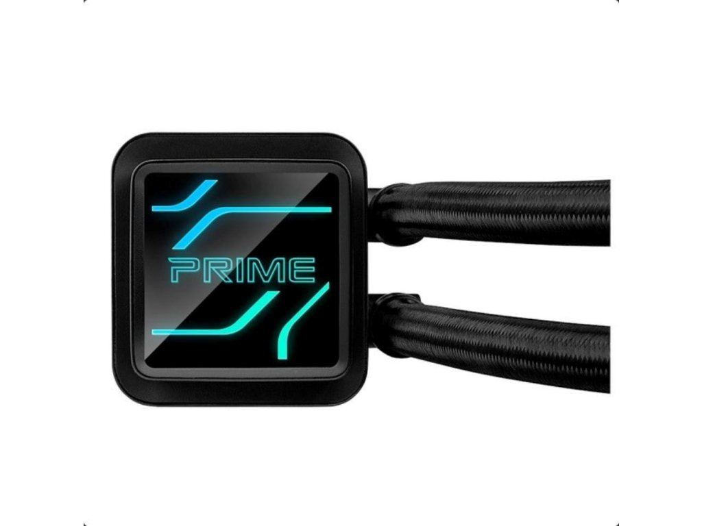 Vodný chladič CPU Prime LC ARGB so špeciálne navrhnutou kontaktnou plochou CPU a žebrovanými kanálmi, vodným blokom s možnosťou Infinity Mirror, predvolene inštalovanými ventilátormi ARGB a osvetlením Aura.