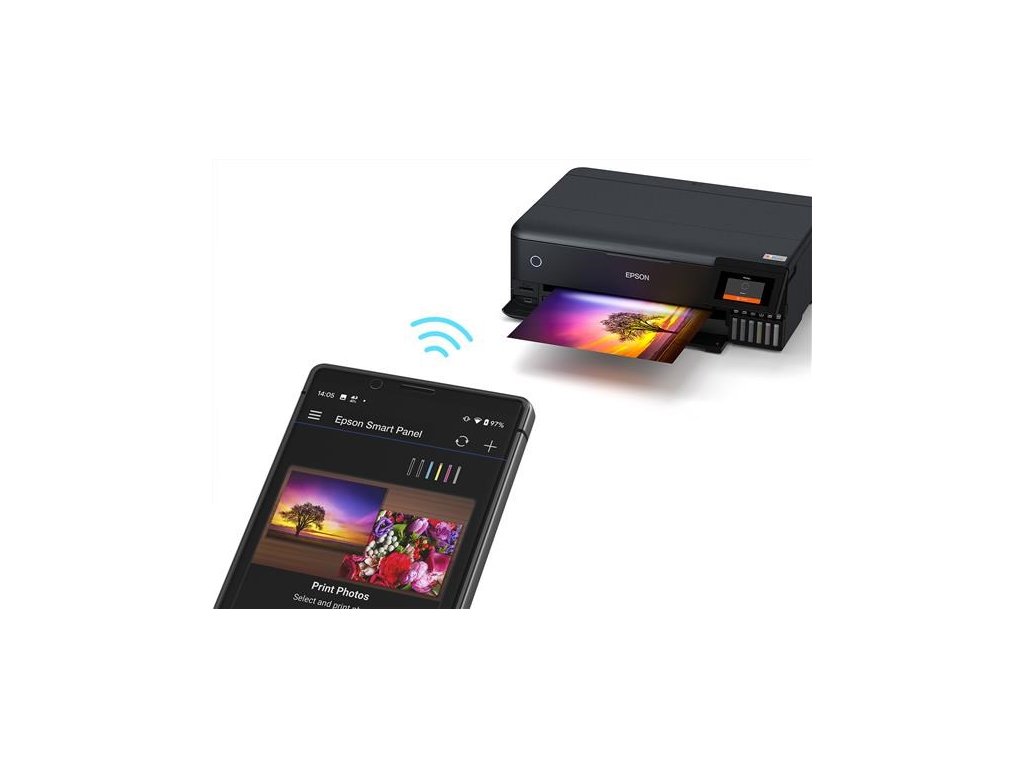Tlačte prvotriedne fotografie až do formátu A3+ pomocou tejto bezdrôtovej šesťfarebnej multifunkčnej tlačiarne pre všetkých kreatívnych nadšencov.