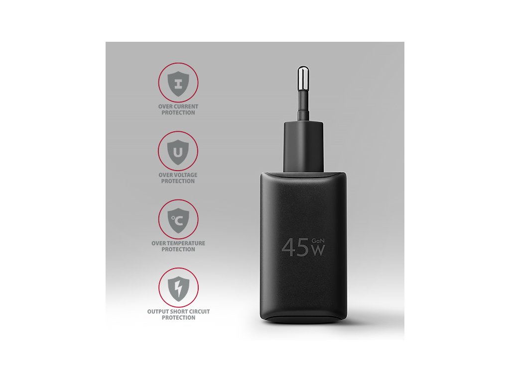Kompaktné rozmery a vysoký výkon sú spôsobené použitím novej technológie GaN. Použité komponenty z nitridu gália pracujú s vysokou účinnosťou, čo umožňuje vysoký výkon v malých rozmeroch. Nabíjačka je vybavená výstupmi Power Delivery 3.0 / Quick Charge 4+ USB typu C a Quick Charge 3.0 USB typu A, ktoré umožňujú rýchle nabíjanie nielen smartfónov a tabletov, ale aj malých notebookov s výkonom až 45W.