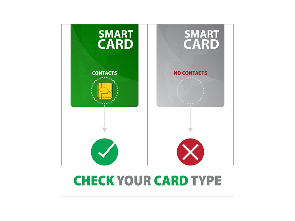 * Poznámka: Čítačka podporuje iba kontaktné karty, ktoré majú viditeľné kontakty na povrchu. Karta bez kontaktov je preto RFID a nemožno ju použiť v čítačke.