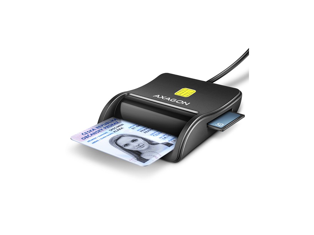 Kompaktná stolná čítačka čipových kariet / ID kariet AXAGON CRE-SM3SD FlatReader s rozhraním USB 2.0 obsahuje aj sloty pre pamäťové karty SD, microSD a SIM. Čítačka kariet podporuje všetky bežné formáty kontaktných čipových kariet, čipových kariet a iných kariet, vrátane kontaktných bankových platobných kariet alebo kontaktných elektronických občianskych kariet*. Čítačka je plne kompatibilná s aplikáciou eObčanka.Vďaka slotu na SIM kartu vrátane softvéru na správu SIM, slotov na SD a microSD karty je možné čítačku použiť aj na zálohovanie a prenos dát.