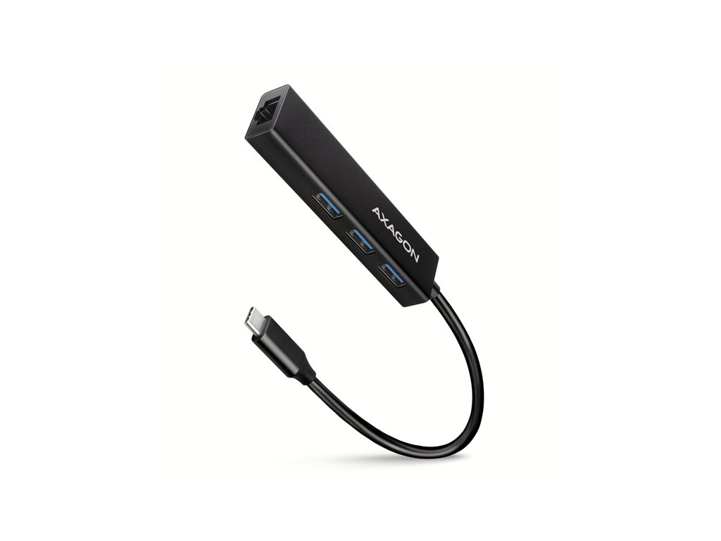 AXAGON HMC-GL3A, USB 3.2 Gen 1 hub, porty 3x USB-A + Gigabit Ethernet, kovový, kábel USB-C 20cm