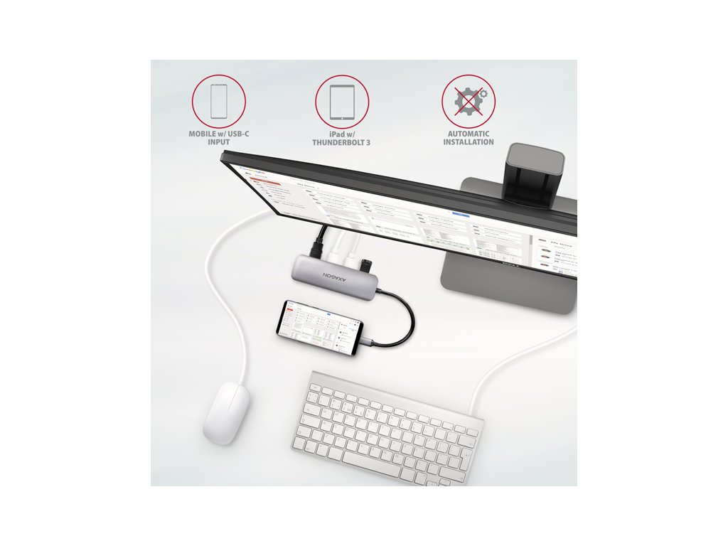Replikátor portov je ideálnym doplnkom pre notebooky bez USB-A konektorov, čítačky kariet a video výstupu. V rozbočovači môžete používať svoje existujúce USB periférie bez nutnosti nákupu nových. Vďaka funkciám Plug and Play a Hot Plug je samotné pripojenie hubu veľmi jednoduché bez zložitej inštalácie a tiež je ľahké pripájať a odpájať periférne zariadenia počas spusteného počítača. Hub sa tiež nebojí pripojenia k telefónom s USB-C konektorom. K telefónu môžete pripojiť flash disk, klávesnicu, myš, monitor, televízor alebo projektor.