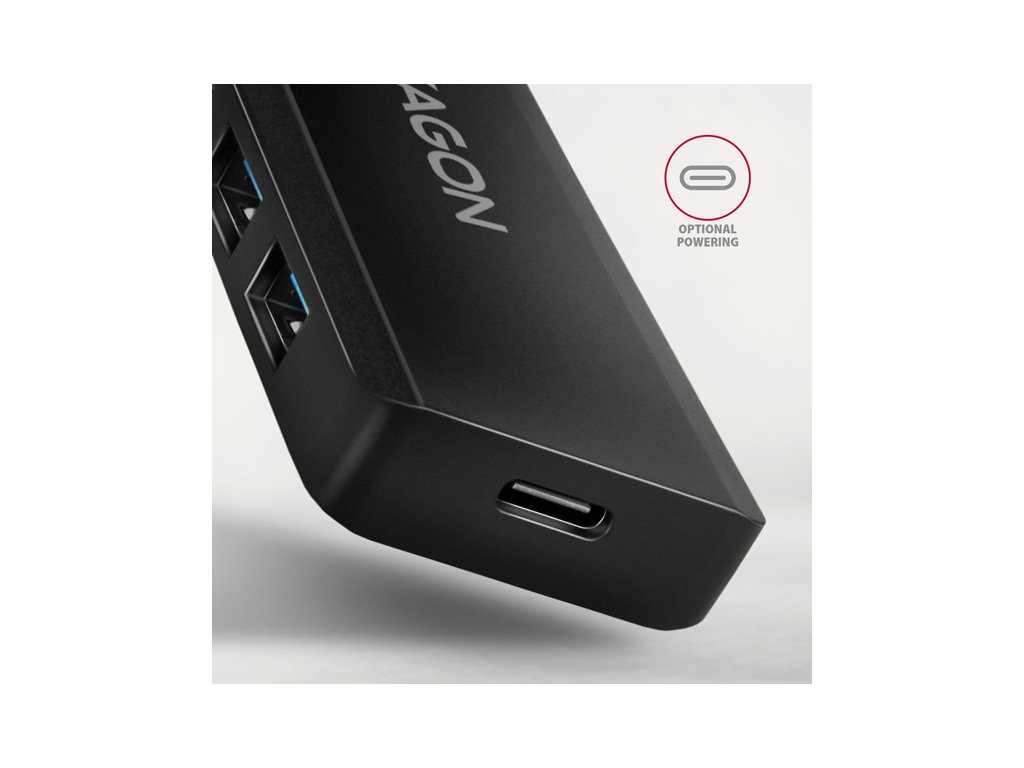 AXAGON HUE-C1A, 4x USB 5Gbps TRAVEL hub, USB-C napájací konektor, kábel USB-A 19cm