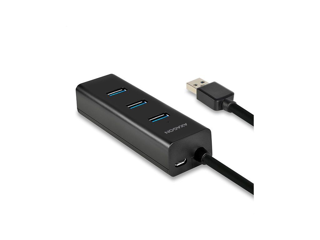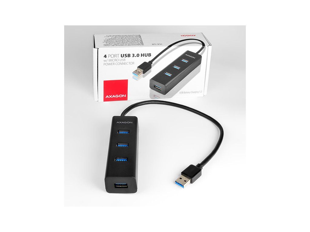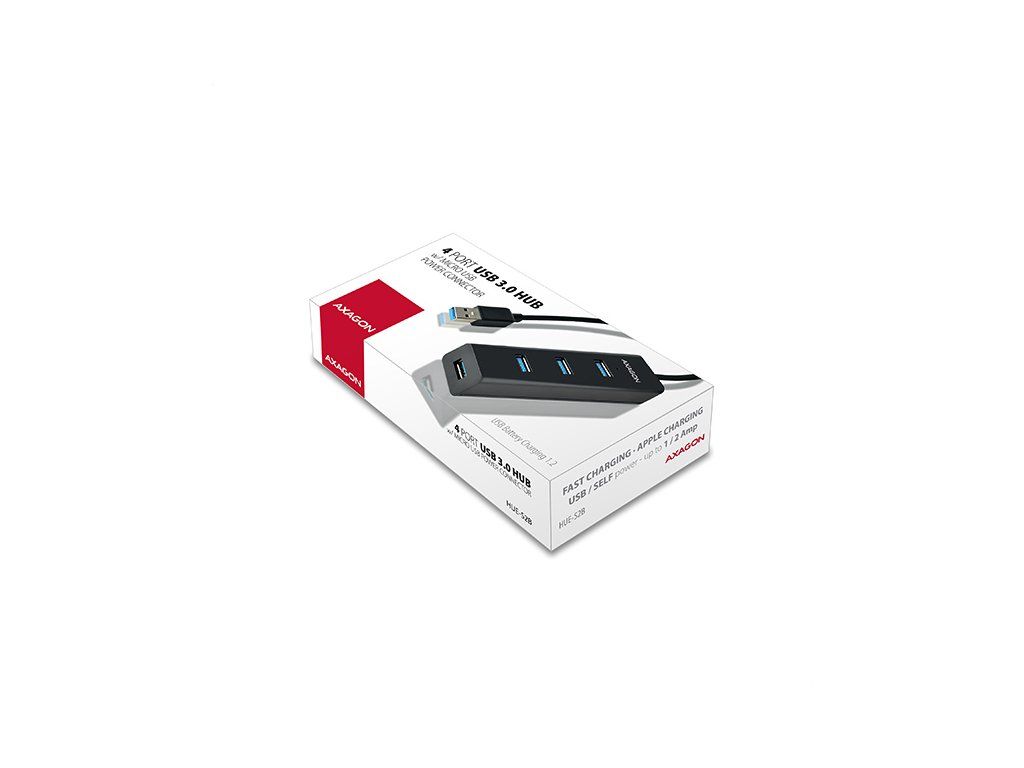 4-portový USB 3.0 Rozbočovač AXAGON HUE-S2B s externým napájaním a podporou rýchleho nabíjania na všetkých portoch. Ľahký, malý rozbočovač s elegantným matným plastovým telom rýchlo a jednoducho pripojí k počítaču až štyri zariadenia USB súčasne. Pevný USB kábel s dostatočnou dĺžkou 30 cm ideálny na použitie s notebookmi.