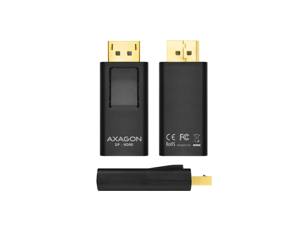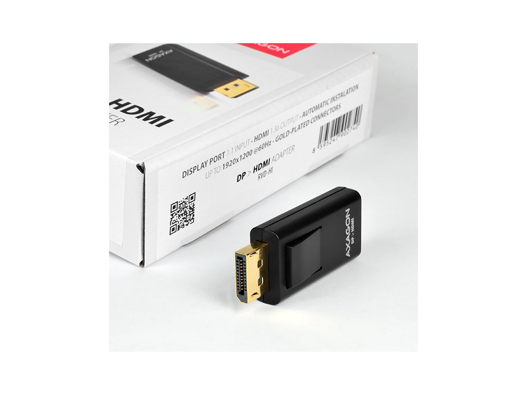 DisplayPort -> HDMI aktívny adaptér AXAGON RVD-HI pre pripojenie HDMI monitora / TV / projektora k počítaču s výstupom DiplayPort.