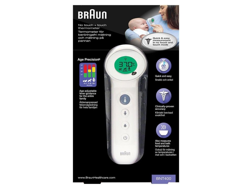 Braun BNT400WE bezkontaktní teploměr, Age Precision, tichý režim, podsvícený displej, bílý