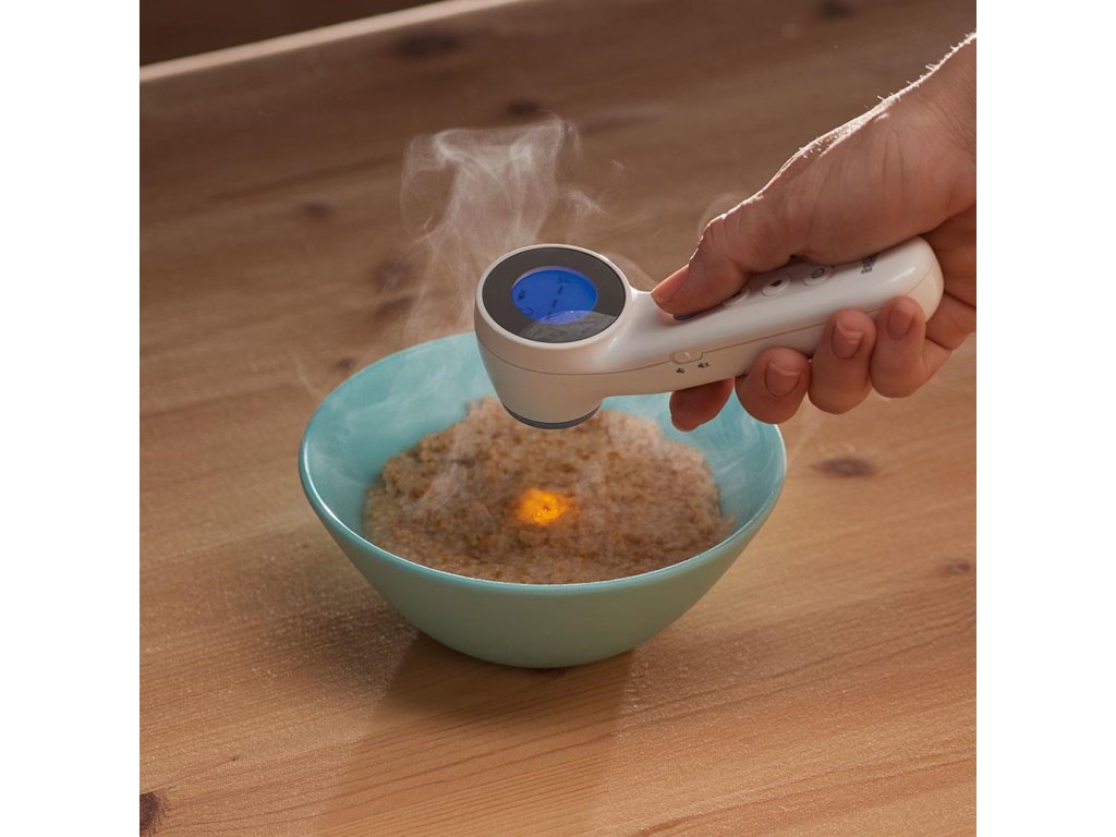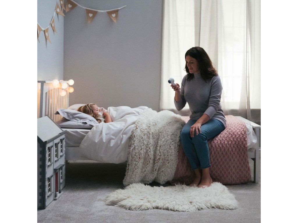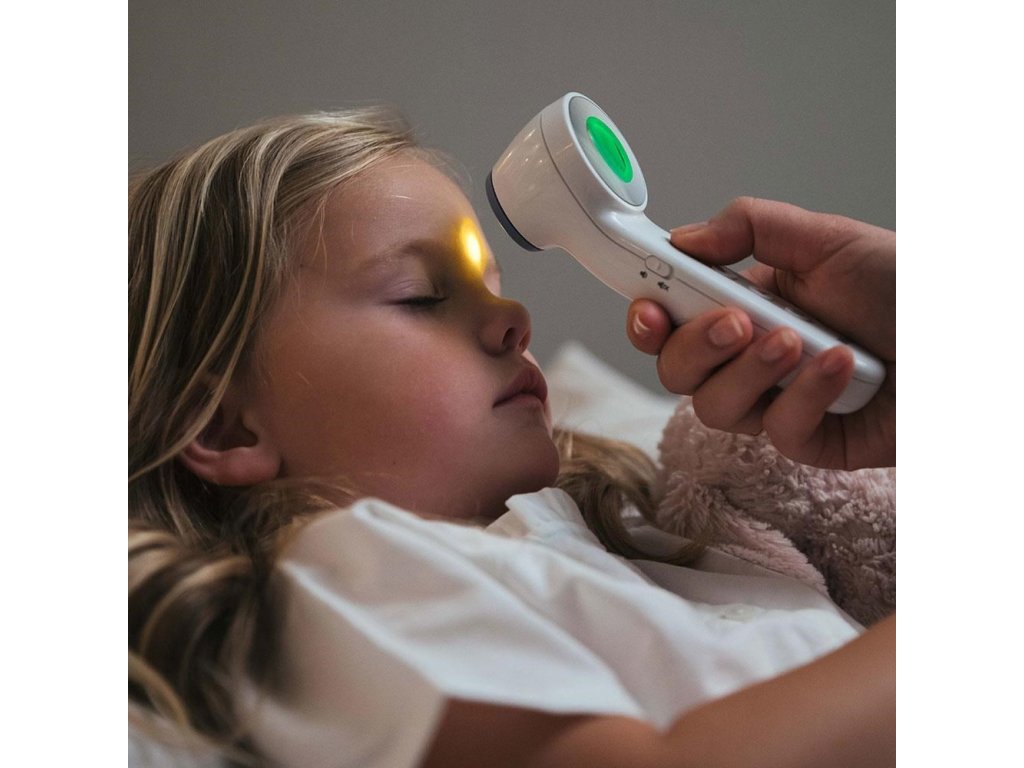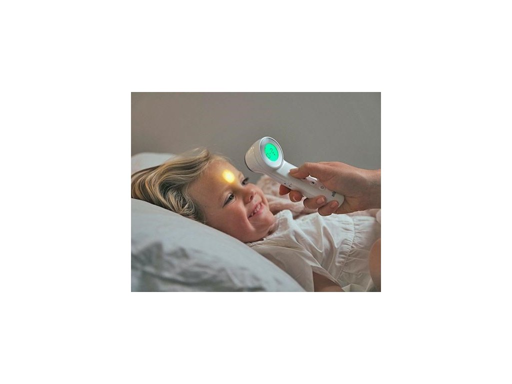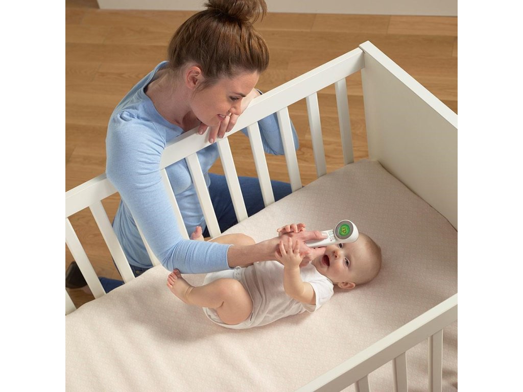 Bezdotykový + dotykový teplomer s presnosťou Age Precision. Patentovaný teplomer využíva technológiu pre jednoduché, bezdotykové a neuveriteľne presné meranie teploty. Chcete-li vykonať meranie v dotykovom režime, umiestnite teplomer medzi obočie na čelo. V bezdotykovom režime držte teplomer medzi obočím približne 2 cm pred čelom dieťaťa. Meranie je teda bez stresu a možno ho vykonať bez rizika, že dieťa vzbudíte. Okrem toho je možné použiť tichý režim, takže môžete merať teplotu dieťaťa takmer nepočuteľne. Okrem toho môžete pomocou režimu Jedlo a tekutiny ľahko merať teplotu jedla, nápojov alebo vody vo vani vášho dieťaťa. Poznámka: Používateľ by mal medzi opakovanými meraniami u tej istej osoby počítať s primeraným časovým odstupom. Na čistenie vždy utrite navlhčenou handričkou a potom utierkou osušte. Nikdy nepoužívajte antibakteriálne čistiace prostriedky a utierky, pretože môžu prístroj nenávratne poškodiť.