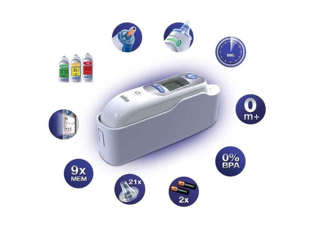 Nevyhnutnosť v každej domácej lekárničke je teplomer. Pre ľahké a rýchle meranie oceníte ušný teplomer Braun IRT 6520, ktorému zmeranie teploty trvá iba 5 sekúnd. Najmä pri meraní teploty u najmenších detí určite oceníte jeho vlastnosti, vďaka ktorým zbavíte bábätká stresu z merania teploty a zároveň sa môžete spoľahnúť, že meranie bude presné.