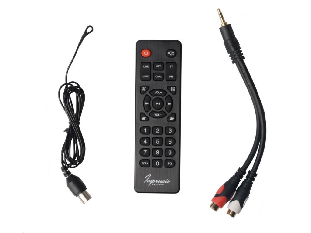 V pohodlí obývačky pravdepodobne nebudete sedieť priamo pred reproduktorom, takže na jeho ovládanie budete častejšie používať priložený diaľkový ovládač. Zvládne väčšinu funkcií, ako napríklad: nastavenie hlasitosti, výber skladby alebo stanice FM, spustenie a pozastavenie prehrávania alebo výber zdroja zvuku medzi rozhraním Bluetooth, rádiom FM, pamäťou USB alebo kartou SD a vstupom LINE-IN, optickým a koaxiálnym vstupom.