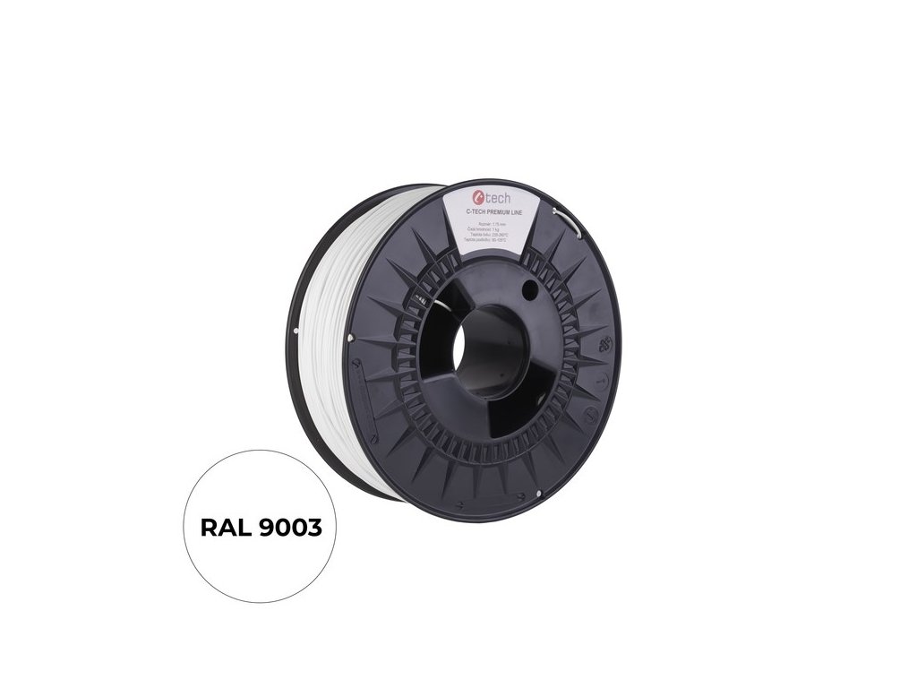 Tlačová niť (filament) C-TECH PREMIUM LINE, ABS, dopravná biela, RAL9003, 1,75mm, 1kg