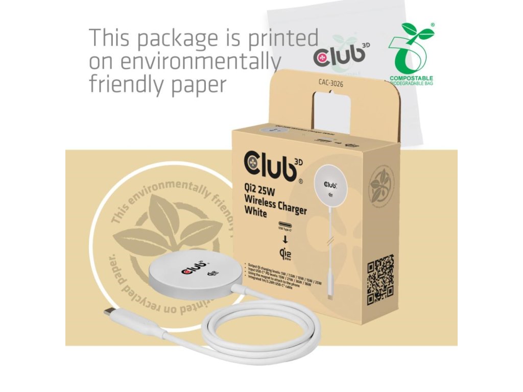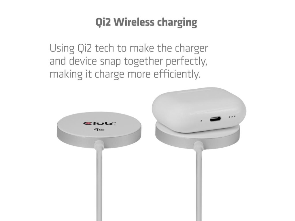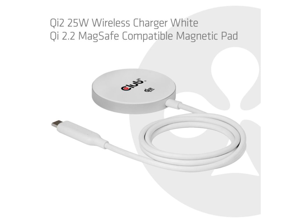 Club3D Bezdrôtová nabíjačka, 1x Qi2 25W, MagSafe, Qi certifikované, biela