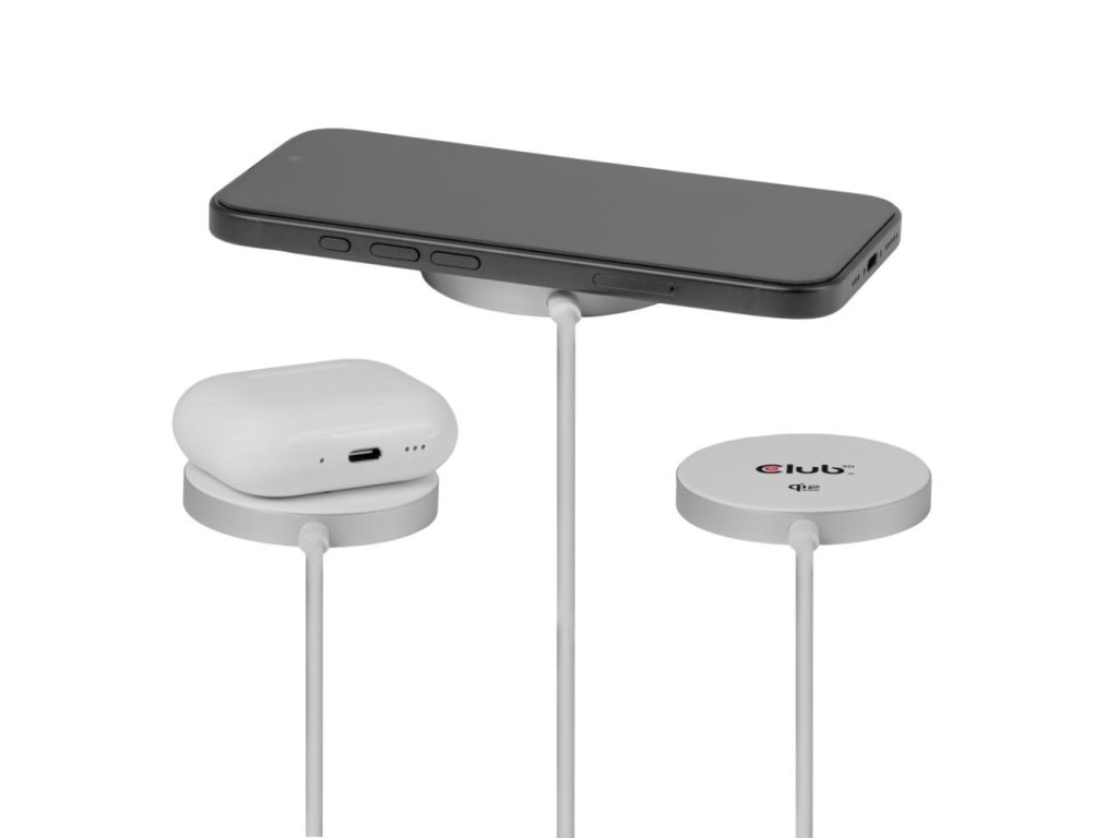 Club3D Bezdrátová nabíječka, 1x Qi2 25W, MagSafe, Qi certifikováno, bílá