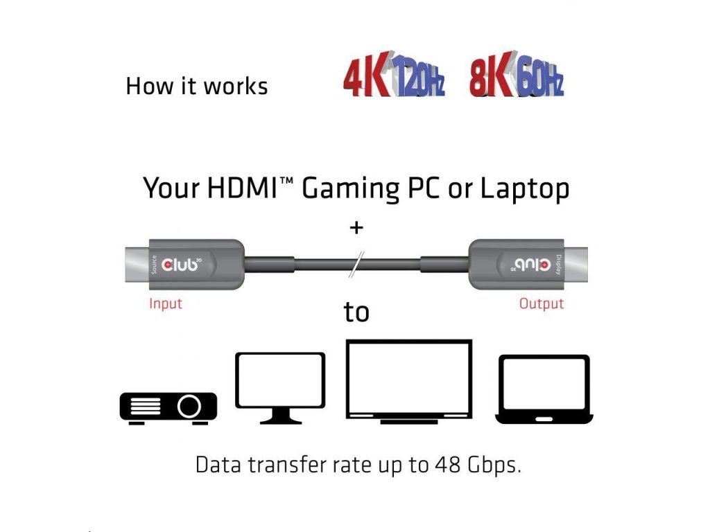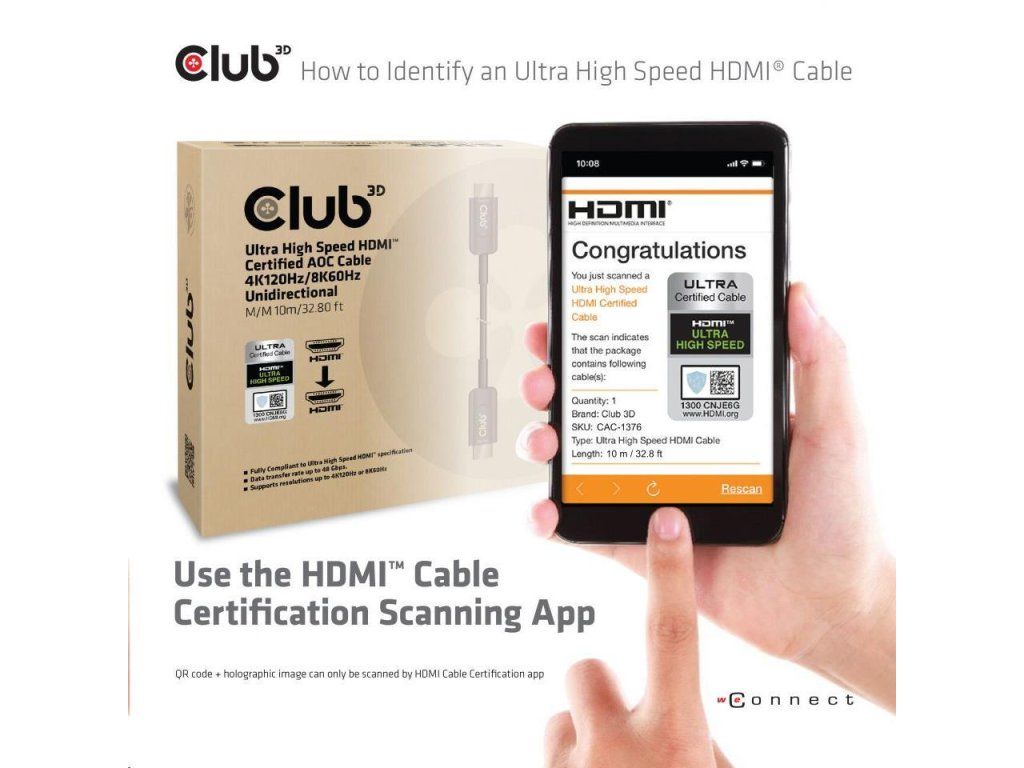 Club3D Kabel Ultra Rychlý HDMI™ Certifikovaný AOC Kabel 8K60Hz, 4K120Hz, 10m