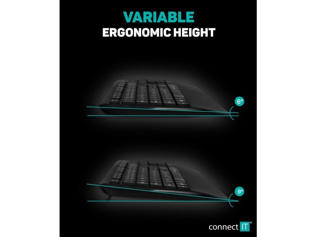 CONNECT IT Combo bezdrôtová čierna klávesnica + myš, (+1x AAA +1x AA batérie zdarma), CZ + SK rozloženie