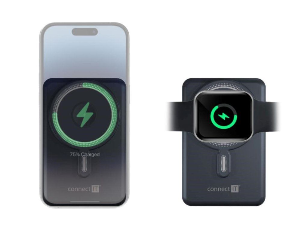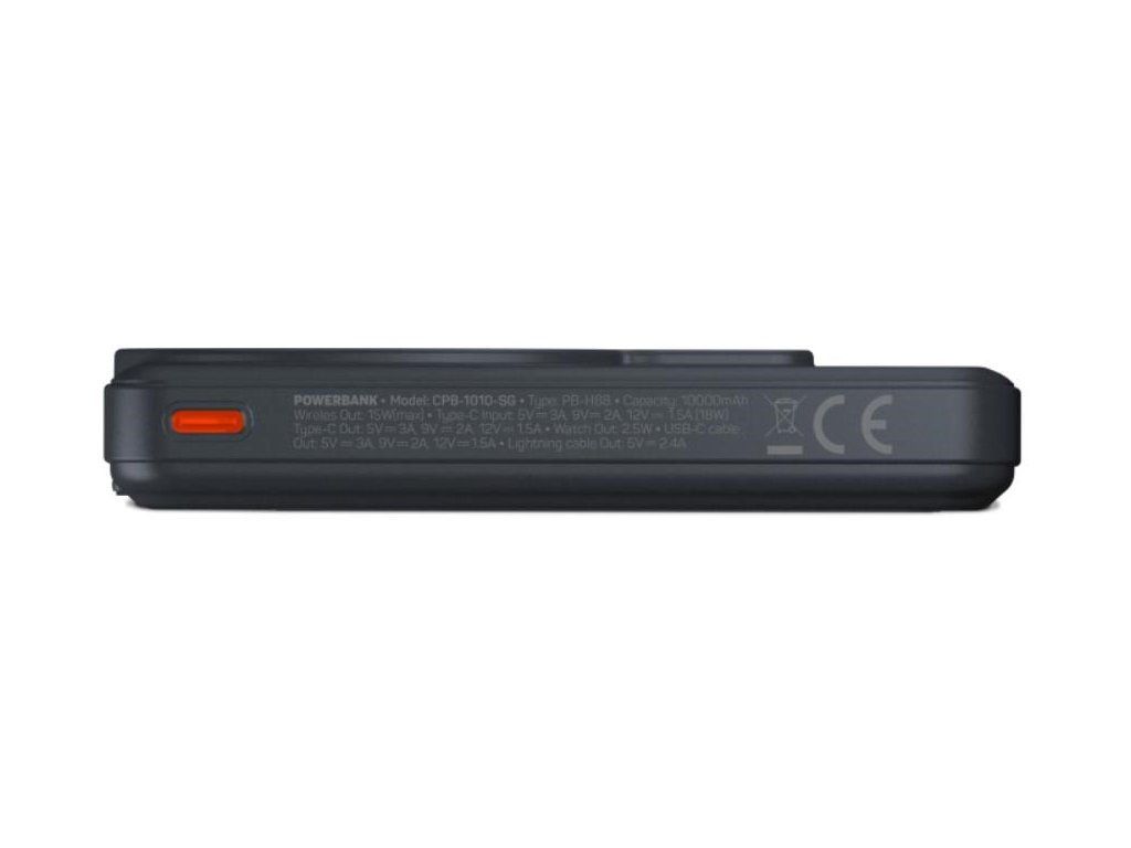 Bezdrôtová MagSafe powerbanka s kapacitou 10000 mAh kompatibilná s Apple iPhone a Apple Watch. Disponuje integrovaným USB-C a Lightning káblom. Podporuje až 20 W rýchlonabíjanie pomocou USB-C kábla.