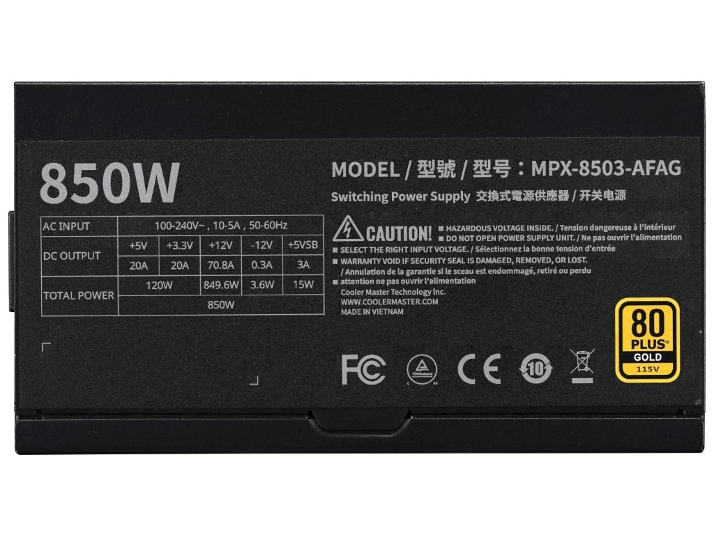 Cooler Master zdroj 850W MWE Gold 3, 120mm, 80+ Gold, Plně modulární, ATX 3.1