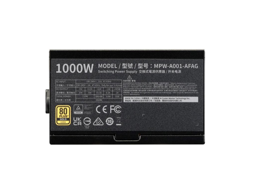 Cooler Master zdroj ELITE Gold 1000W FM, 120mm, Plně modulární, 80 Plus Gold, ATX 3.1