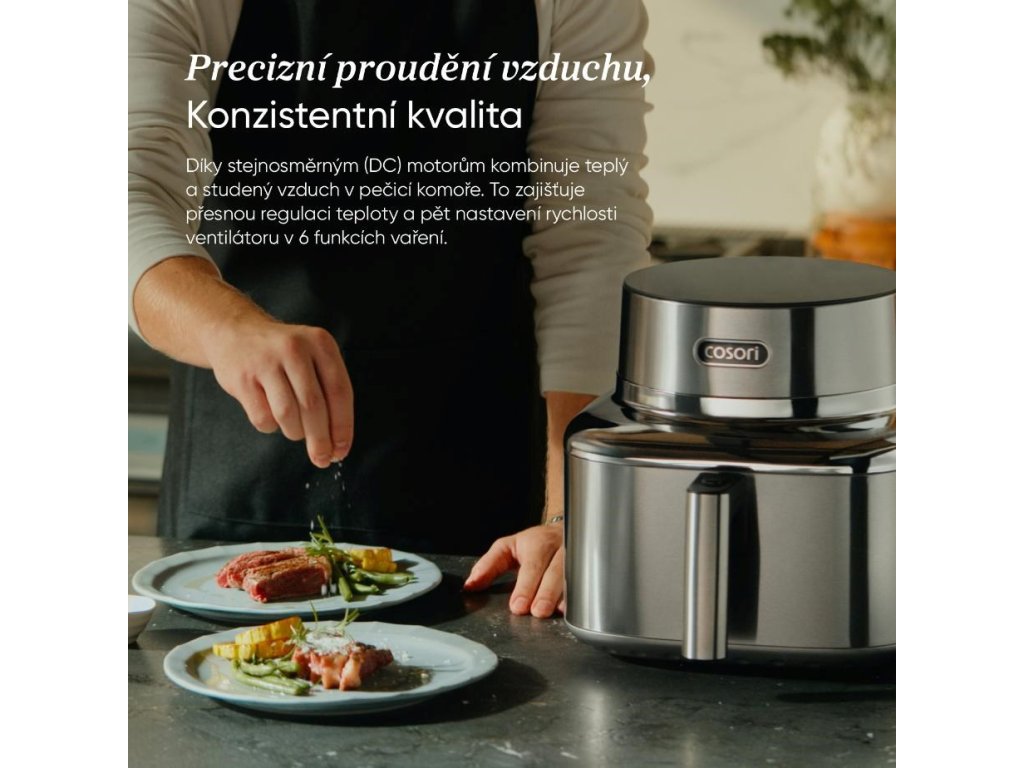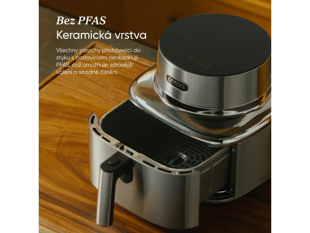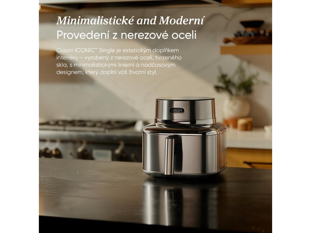 COSORI Iconic bol navrhnutý tak, aby bol prirodzenou súčasťou moderného interiéru, nie len obyčajným spotrebičom. Nerezová oceľ a tvrdené sklo vytvárajú čistý, pokojný vzhľad, ktorý krásne zapadá do minimalistických kuchýň. Je to predmet, ktorý poteší oko zakaždým, keď okolo neho prejdete.