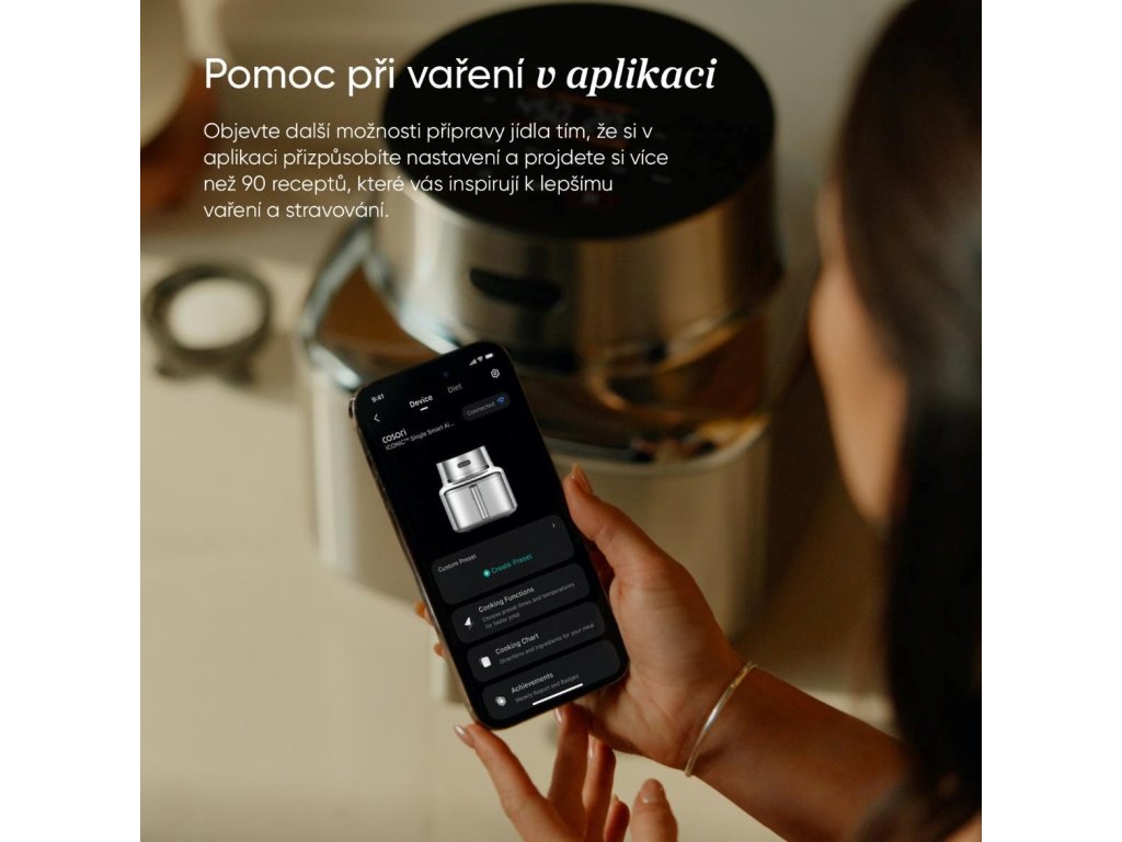 Vďaka inteligentnej aplikácii COSORI máte vždy kontrolu nad varením vďaka upozorneniam na vašom telefóne. Nájdete tu aj recepty, tipy a presné nastavenia pre každé jedlo. Iconic sa stane vaším tichým, ale vždy pripraveným kuchynským pomocníkom.