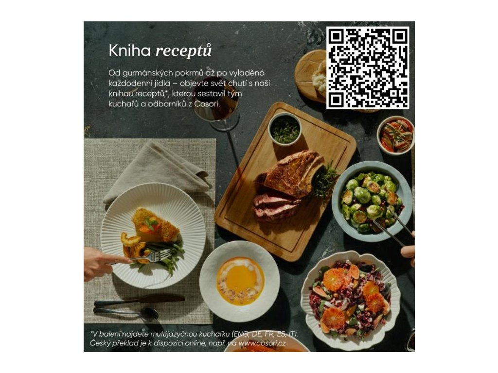 Súčasťou balenia je elegantná kuchárska kniha plná exkluzívnych receptov, ktoré vás budú inšpirovať každý deň. K dispozícii je aj online verzia v češtine, takže môžete pohodlne variť pomocou telefónu alebo tabletu. Každé jedlo sa stane malým kulinárskym rituálom.