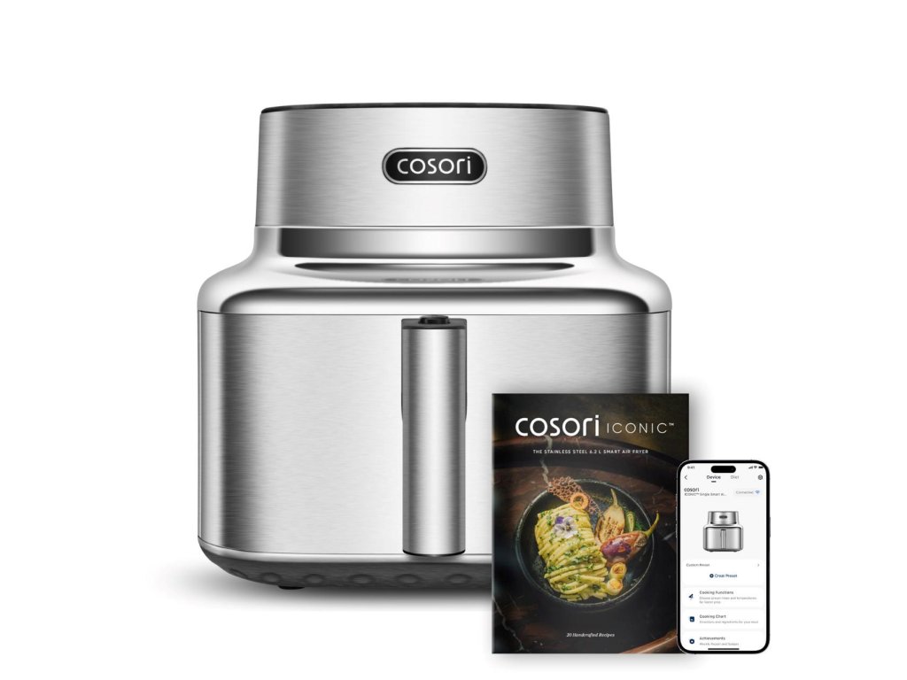 Súčasťou balenia je elegantná kuchárska kniha plná inšpirácie, dostupná aj v online českej verzii, ktorá vás krok za krokom prevedie zdravým varením. Predĺžená 5-ročná záruka*, testovaná životnosť 2000 hodín a odolnosť voči 300 cyklom umývania v umývačke riadu dokazujú, že Iconic je stvorený pre roky každodenného potešenia. To všetko v tele, ktoré vyzerá rovnako dobre, ako varí. COSORI Iconic nie je spotrebič – je to životný štýl, v ktorom sa dizajn, zdravie a výkon spájajú v dokonalej harmónii.