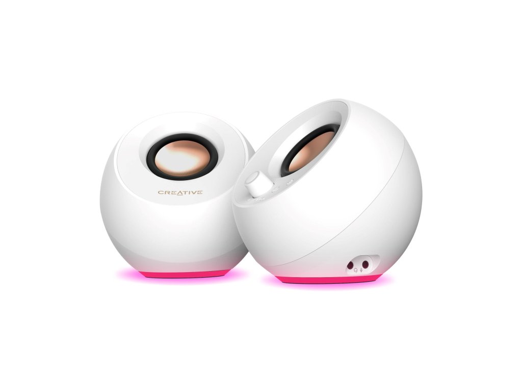 Teraz s nastaviteľným osvetlením RGB! Reproduktory Creative Pebble Pro umožňujú výber zo širokého spektra farieb a troch svetelných efektov pomocou jednoduchého nastavenia typu plug-and-play.