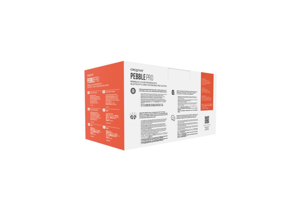 Kompaktné reproduktory Pebble Pro, ktoré si zachovávajú svoj charakteristický 45° zvýšený uhol, aby smerovali zvuk priamo k vašim ušiam a poskytli vám pohlcujúci zážitok z počúvania, dosahujú akustický výkon až 10 W RMS a špičkový výkon až 20 W pri pripojení cez USB-C. Ak chcete zvuk ešte viac zosilniť, môžete reproduktory Creative Pebble Pro pripojiť k 30W adaptéru USB PD (nie je súčasťou balenia) a vychutnať si ohromujúci akustický výkon až 30 W RMS a 60 W v špičke.