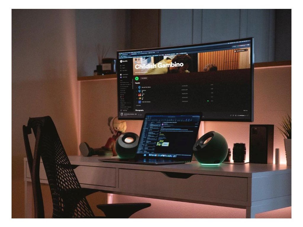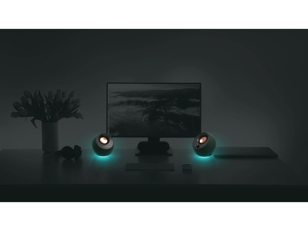 Vďaka širokému výberu farieb a 3 svetelným efektom si môžete vybrať nastavenie, ktoré bude vyhovovať konkrétnej požadovanej atmosfére. Osvetlenie RGB reproduktorov Creative Pebble Pro dokáže prechádzať spektrom farieb, pulzovať do rytmu alebo len svietiť jednobarevným žiarením. Keď je čas skončiť, RGB sa dá ľahko vypnúť pomocou ovládacieho tlačidla RGB.