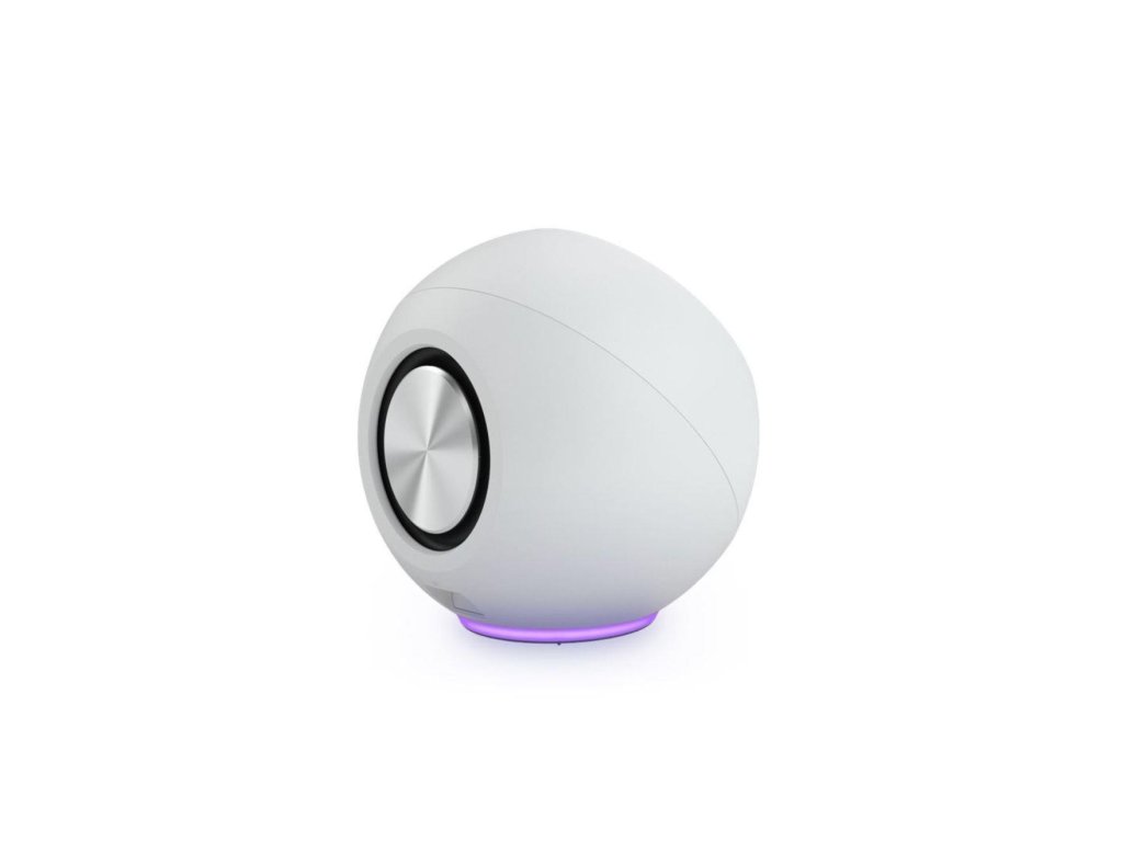 Tento guľovitý reproduktor je dostupný v čiernej alebo bielej farbe a dokonale ozvláštni akýkoľvek systém.