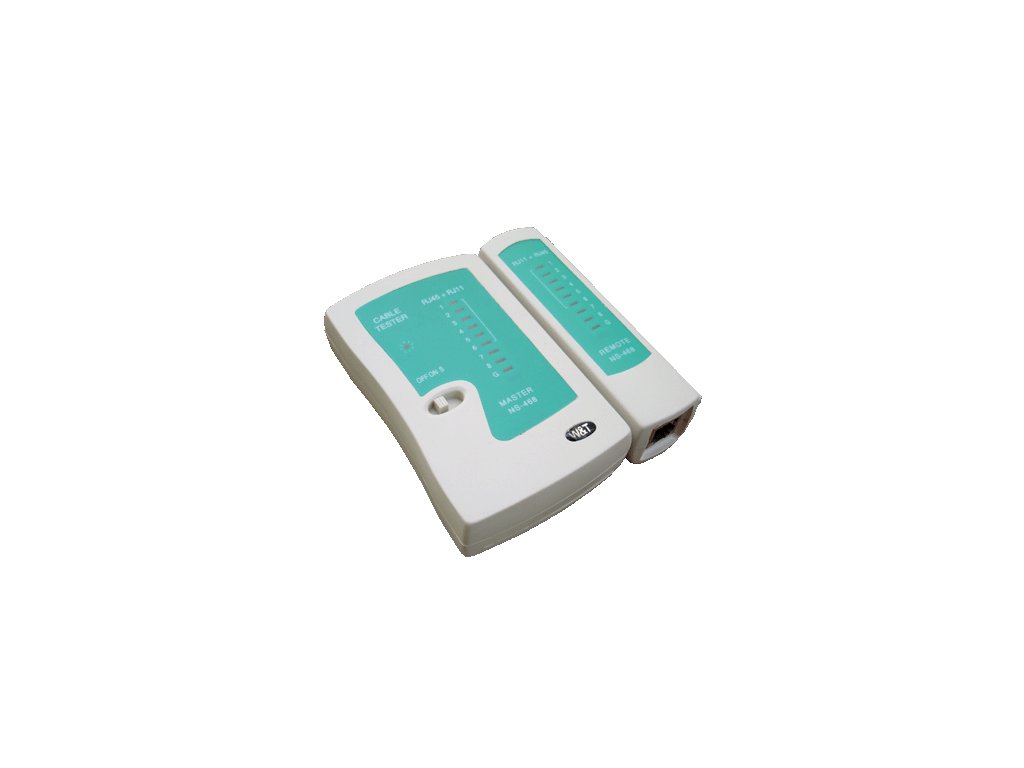 Tester pro síťové kabely zakončené konektory RJ11,RJ12 a RJ45. Dokáže zjistit, zda je kabel přerušený, jestli má zkratované některé žíly nebo zjistit typ kabelu (stíněný-nestíněný, přímý-křížený) Lze testovat i kabely již instalované ve zdech pomocí odnímatelné částí testeru, která se jednoduše připojí na druhý konec kabelu. • LED na základním i přídavném modulu • signalizace přerušeného vedení • signalizace zkratu • signalizace křížení • testování stíněné i nestíněné kabeláže • konektory RJ 45, 12, 11 • typ přístroje NS-468Dodatočné parametre