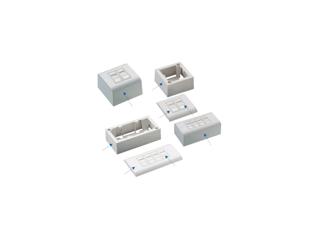 STP 4 x RJ45 zásuvka Cat.5e (nad i pod omítku) DUAL - lze použít nástroj 110 i LSA PŘEHLED • zásuvka je určená pro montáž ''nad i pod omítku'' • 4 x RJ45 schovaný za protiprachovou krytkou • stíněné porty • cat.5e • barva bílá Komplet zásuvka obsahuje tyto položky: • 1ks Surface BOX 80 x 150mm pro 4ks (45 x 22,5) • 1ks Face plate 80 x 150mm pro 4ks (45 x 22,5) SHUTTER • 4ks Modul (45 x 22,5mm) do parapetní lišty s clonkou bílý • 4ks STP Keystone Cat.5e silverDodatočné parametre