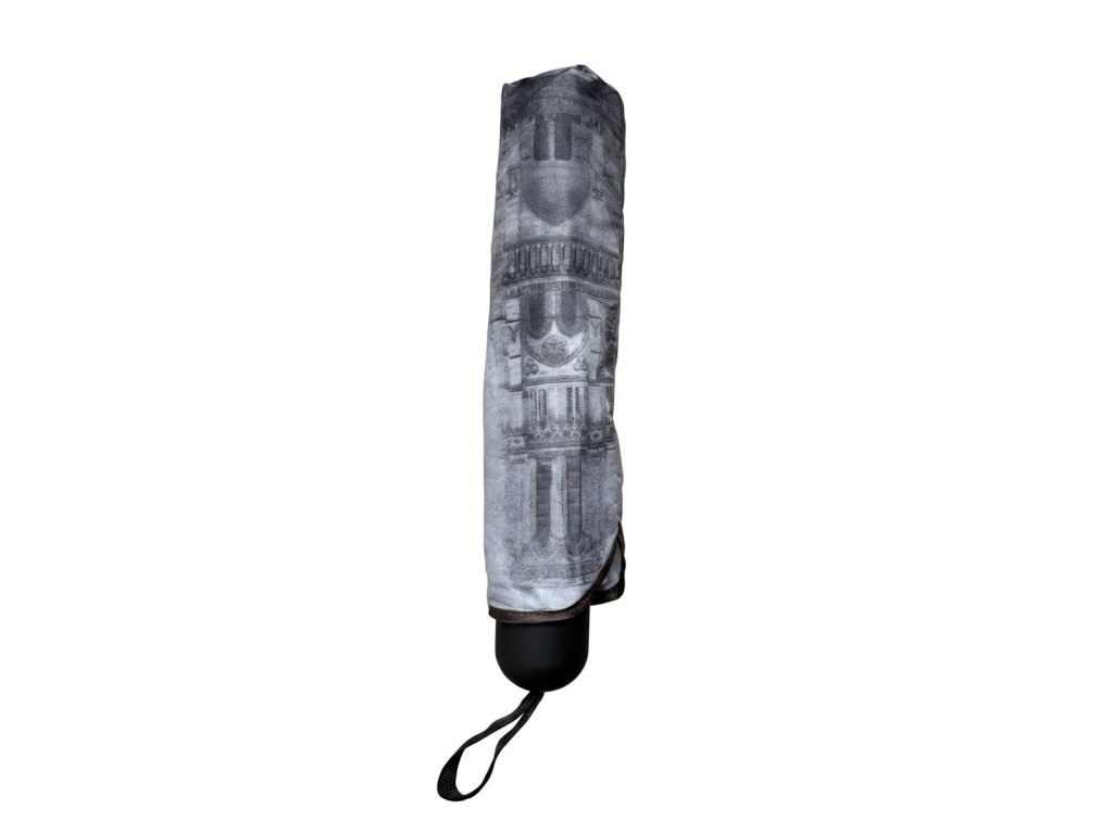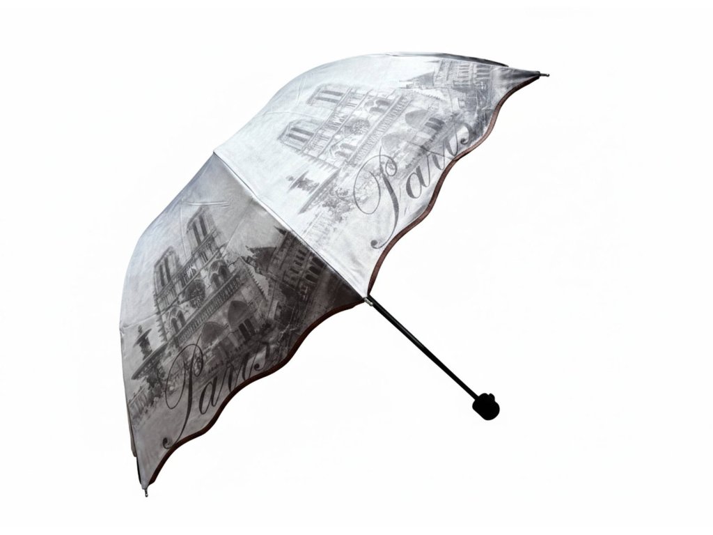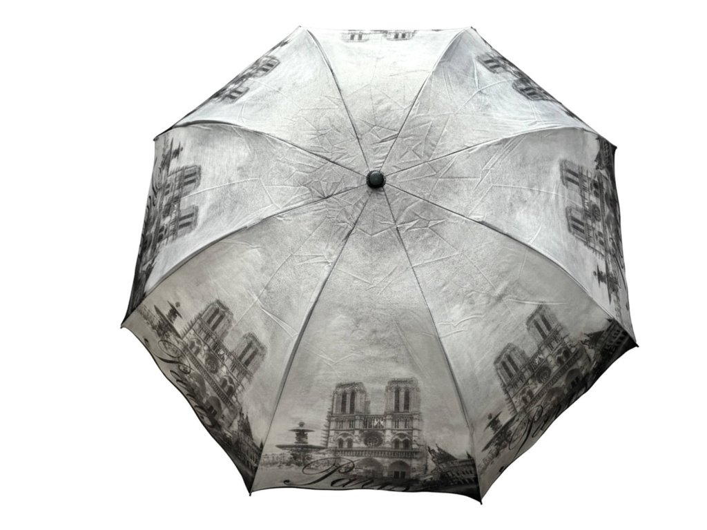 Preneste sa do ulíc sychravého Paríža s eleganciou, ktorá vás ochráni. Tento skladací dáždnik s ikonickým motívom katedrály Notre-Dame nie je len praktickou pomôckou, ale nadčasovým módnym doplnkom v čiernobielom prevedení, ktorý dokonale doplní váš mestský outfit.