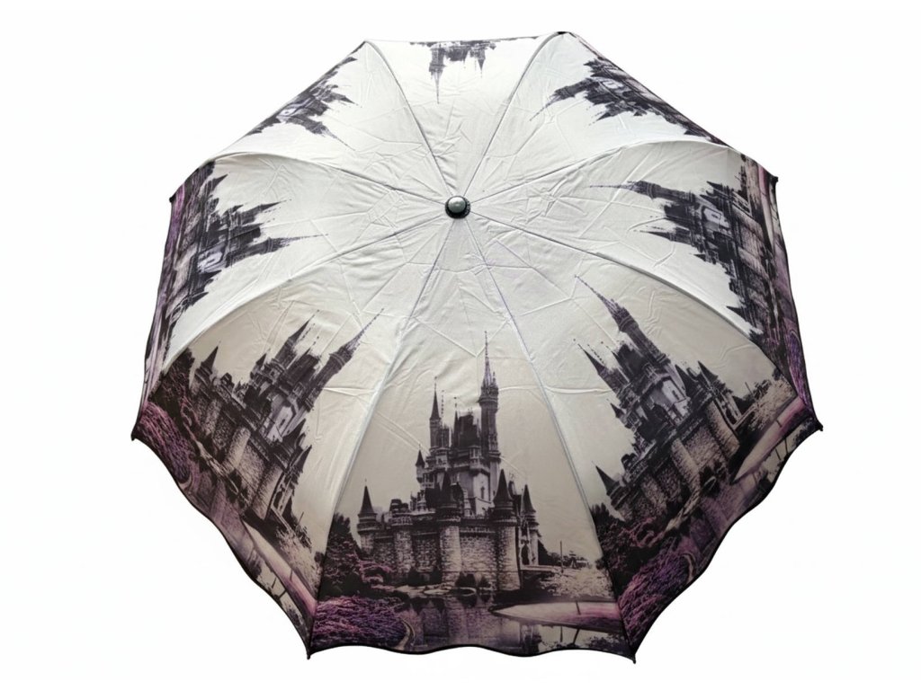 Predstavte si sychravé ráno, kedy sa nikomu nechce ísť von. Vy však vyťahujete svoj „Magický zámok“ a zrazu je svet o niečo krajší. Tento dáždnik vám dodá pocit sebavedomia a istoty – vietor sa doň môže oprieť, ale vy zostávate v suchu a elegantná. Ideálny spoločník na cesty do práce, na rande alebo víkendové výlety.