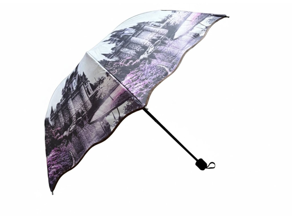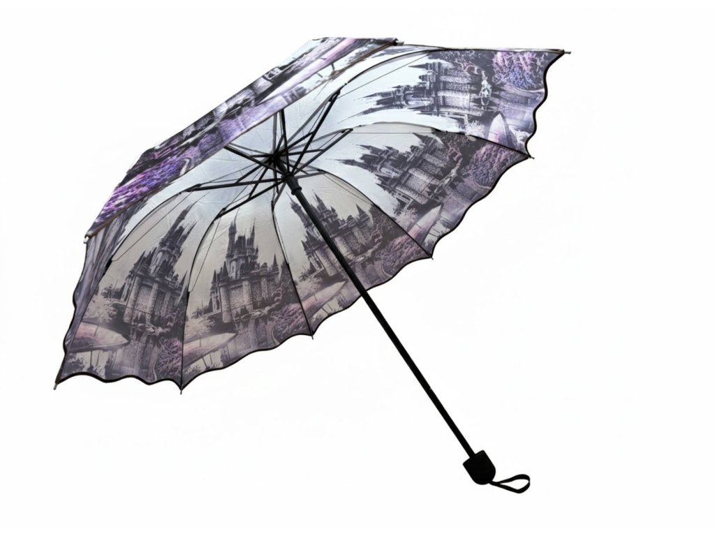 Hľadáte dáždnik, ktorý nie je len praktickou pomôckou, ale aj štýlovým doplnkom? S unikátnou potlačou zámku v elegantných fialových tónoch okamžite vystúpite z davu sivých ulíc. Tento dáždnik spája rozprávkovú estetiku s nekompromisnou pevnosťou, ktorú pocítite hneď pri prvom otvorení.