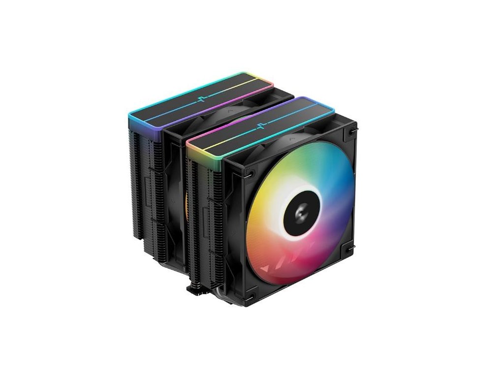 DeepCool AG620 BK ARGB V2 je celý čierny dvojvežový chladič procesora zameraný na vysokú výkonnosť, ktorý sa pýši šiestimi tepelnými trubicami umiestnenými v hustej veži chladiča pre optimálny odvod tepla a je vybavený dvoma ladenými 120mm ventilátormi ARGB PWM pre výkonné chladenie.