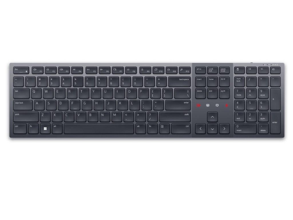 Jde o první nabíjecí klávesnici s certifikací Zoom na světě, vytvořenou s cílem transformovat spolupráci, zvýšit produktivitu a zajistit pohodlí po celý den. Technické údaje Typ zařízení: Klávesnice Podsvícení: Ano Rozhraní: 2.4 GHz, Bluetooth 5.1 Bezdrátový přijímač: Bezdrátový přijímač USB Typ: Bezdrátový Funkce horkých kláves: Multimédia, programovatelný, kalkulačka, hra/přestávka, ovládání podsvětlení, snímek obrazovky, rolovací zámek, Zoom touch controls Lokalizace a rozložení: QWERTZ česká/slovenská Vlastnosti: Číselná klávesnice Šířka: 43.97 cm Hloubka: 12.16 cm Výška: 2.07 cm Váha: 728 g Barva: Grafit Dodávané příslušenství: Kabel USB-C na USB-C Odpovídající standardům: AES-128, certifikace Zoom Obsažený software: Dell Peripheral Manager (pouze Windows) Požadovaný operační systém: Apple MacOS, Linux, Android, Google Chrome OS, Red Hat Enterprise Linux 8.0, Ubuntu 18.04, Microsoft Windows 7 / 8.1 / 10 / 11 Typ baterie: Dobijecí Provozní doba (až): 20 dnůDodatočné parametre