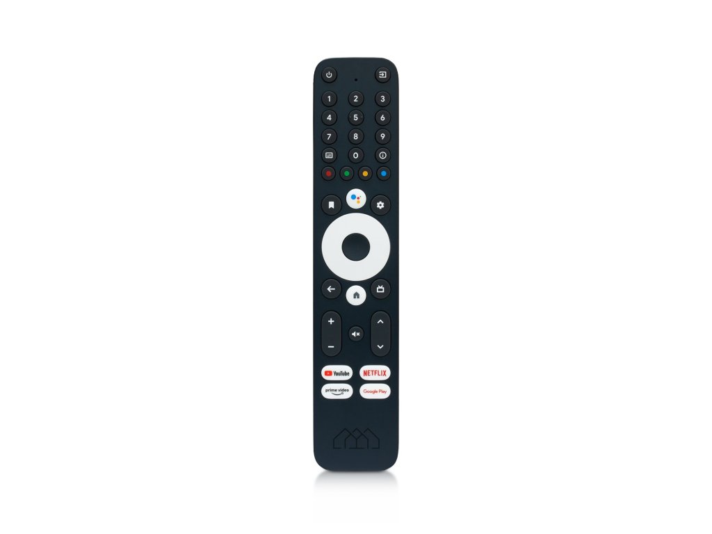 Diaľkové ovládanie Homatics Big Doplnkové bluetooth diaľkové ovládanie pre produkty značky Homatics. Na ovládaní nájdete oproti štandardnému aj numerické tlačidlá, farebné tlačidlá, ktoré využijete v niektorých aplikáciach, tlačidlo na zmenu AV/HDMI vstupu a samozrejme všetky tlačidlá zo štandardného ovládania. Ovládanie môžete používať aj pre hlasové povely služby Google. Povedzte čo Vás zaujíma alebo čo chcete sledovať a Google asistent Vám to zobrazí priamo na Vašej TV. Porovnanie veľkosti Big ovládania a štandardného ovládaniaDodatočné parametre